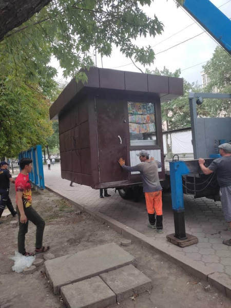 Ала-Тоо кинотеатрынын жанындагы киоск демонтаждалды, буга чейин ээлери менен түшүндүрүү иштери жүргүзүлгөн.