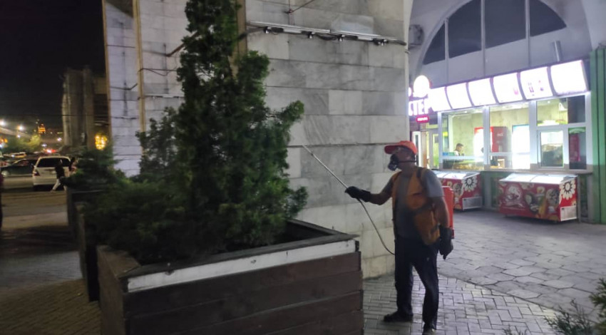 "Тазалык" муниципалдык ишканасынын кызматкерлери Ала-Тоо аянтында ийне жалбырактуу көчөттөрдү тазалап чыгышты.