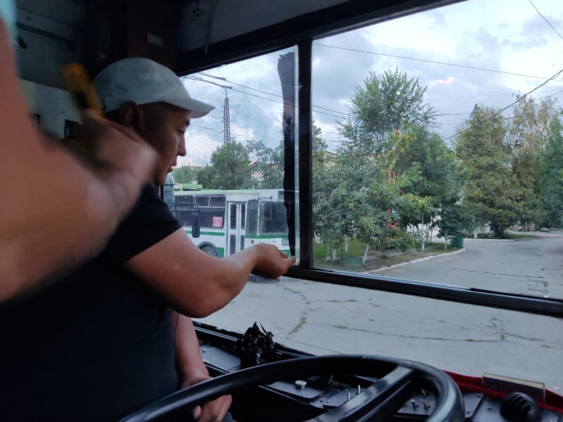 "Бишкек троллейбус башкармалыгы" муниципалдык ишканасынын жол кыймылынын коопсуздугу бөлүмүнүн кызматкерлери троллейбус айдоочуларынын мыйзамсыз караңгылатылган айнектерин аныктоо боюнча рейд өткөрүштү.