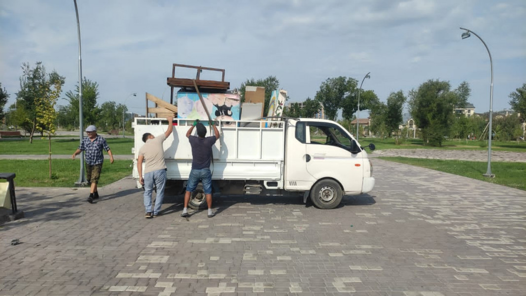 Октябрь районунун башчысы Азамат Дороевдин тапшырмасы боюнча "Тазалык" муниципалдык ишканасы, Октябрь районунун ички иштер башкармалыгы, Бишкек шаарынын мэриясынын көрктөндүрүү жана жерди пайдаланууну контролдоо боюнча муниципалдык инспекциясы "Ынтымак-2" паркында мыйзамсыз башаламан соода-сатыкка каршы текшерүү жүргүзүштү.