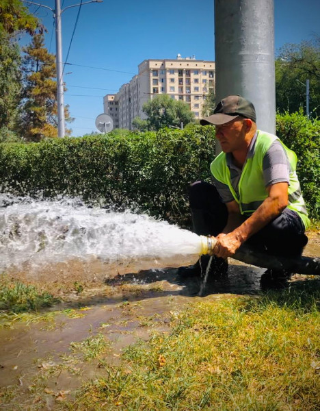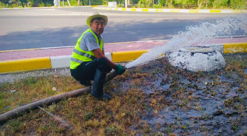 Ушундай атайын помпа менен жашылдандыруучулар Манас проспектин, Жибек-Жолу, “Эмен” сейил багын, “Ынтымак”, “Ата-Түрк”, “Жеңиш” сейил бактарын сугарышты.