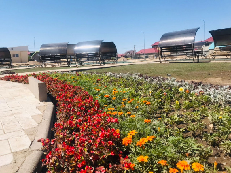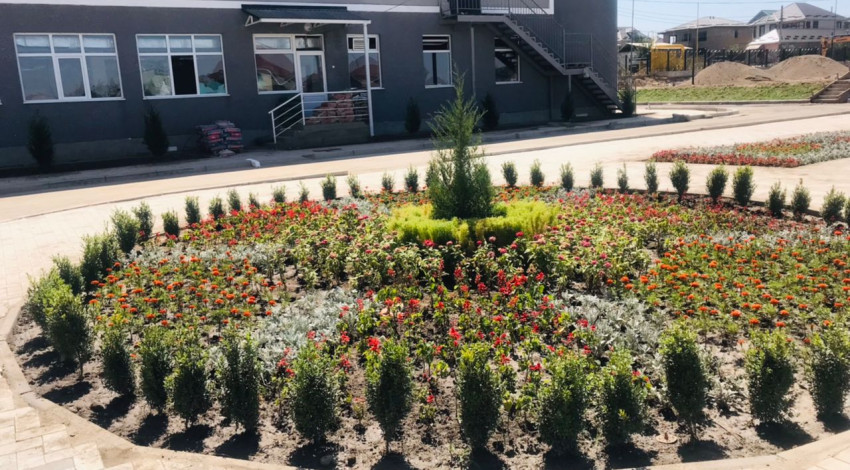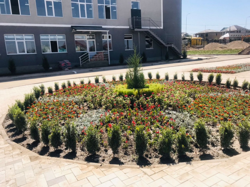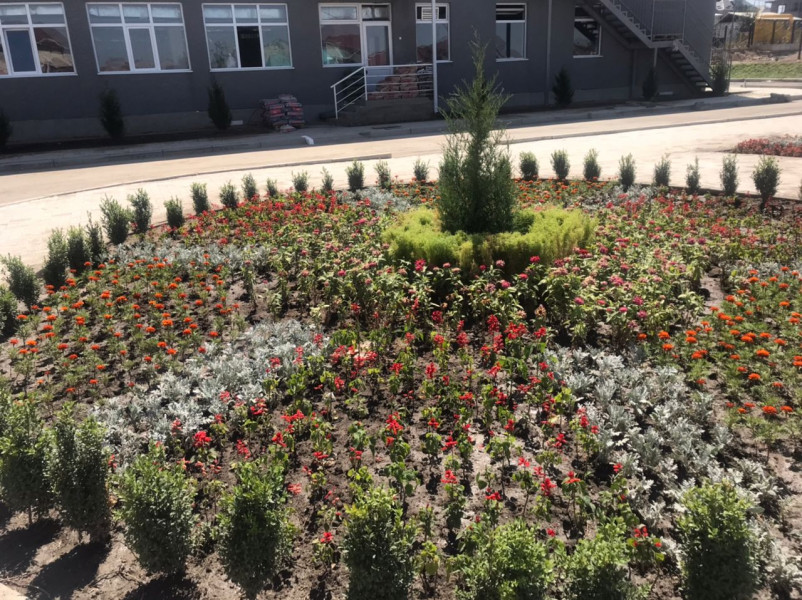 №10 орто мектептин аймагына жашылдандыруучулар газон чөптүн үрөнүн себишти, бир жылдык гүлдөрдөн клумбаларды уюштурушту, ошондой эле 14 түп арча отургузушту.