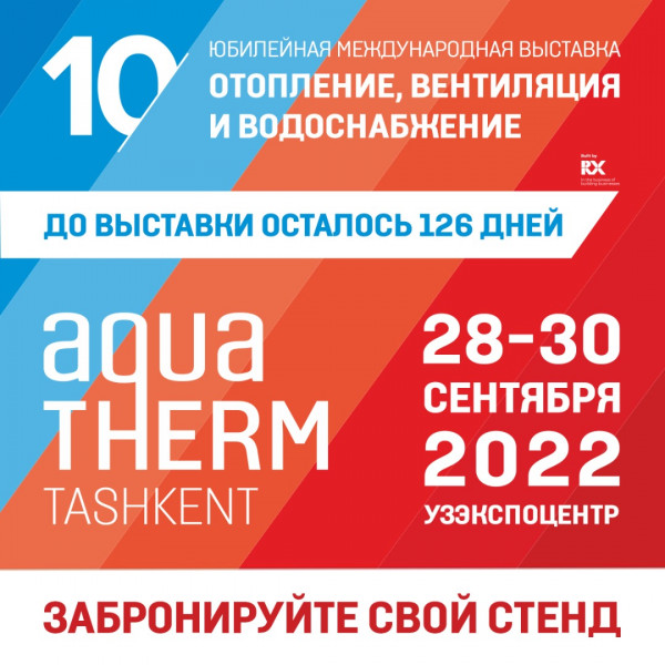 2022-жылдын 28-сентябрынан 30-сентябрына чейин Ташкентте (Өзбекстан) “Жылуулук, желдетүү, кондициялоо, суу менен камсыздоо, сантехника, бассейндер, курчап турган чөйрөнү коргоо технологиялары жана энергиянын кайра жаралуучу булактары – Aquatherm2022” 10-юбилейлик эл аралык көргөзмөсү өтөт.