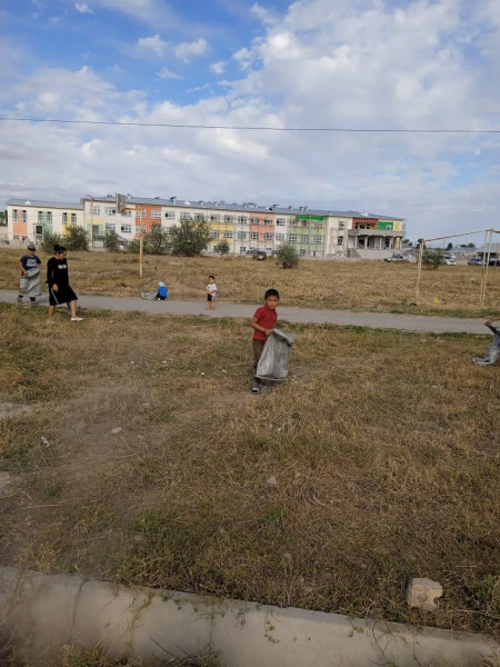 Тазалоо иштери жаңы курулуп жаткан мектептин тийиштүү аймагында жана узундугу 2 чакырымдан ашык борбордук көчөдө жүргүзүлдү.