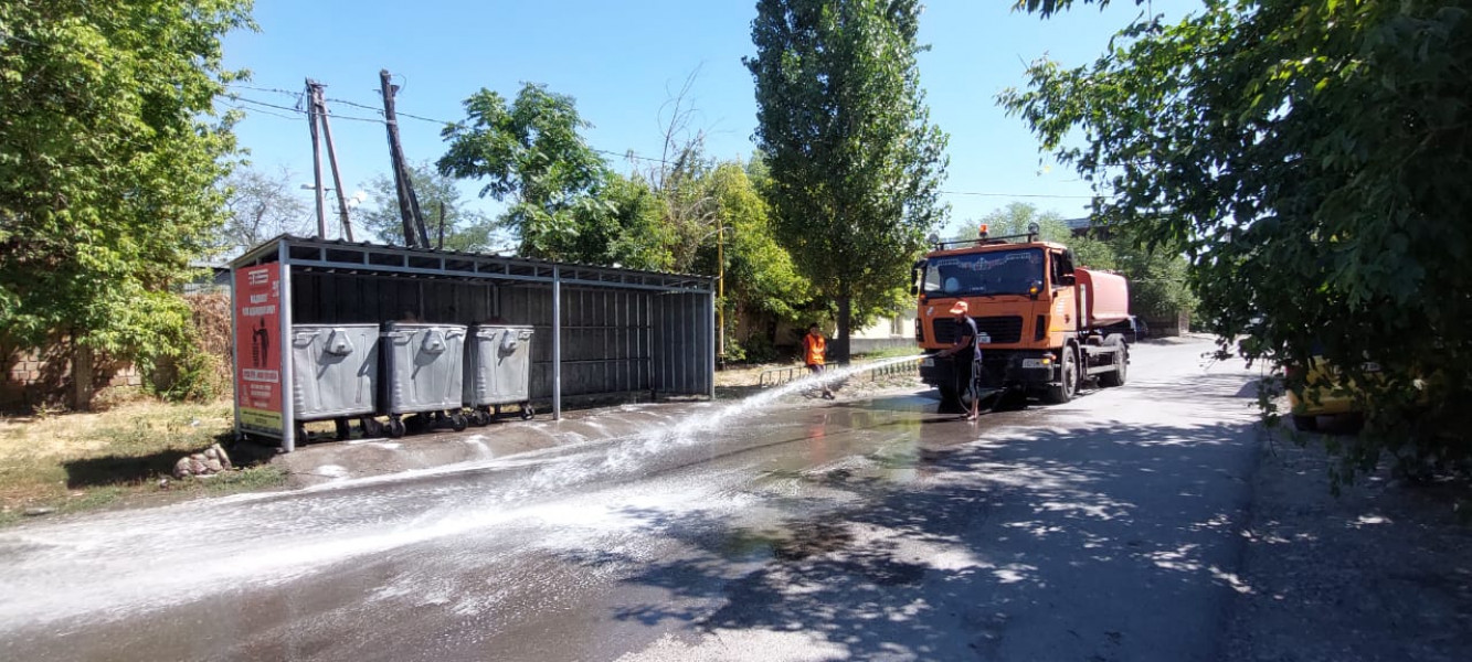 Биринчи май районунда 2 күндө 200гө жакын таштанды челеги жана 30дан ашык таштанды аянтчасы жуулду. Биринчи күнү Ленинградская, Тоголок Молдо, Мидин, Щербаков көчөлөрүндө, Жаш Гвардия бульварында жууп-тазалоо иштери жүргүзүлдү. Экинчи күнү челектер Месароша, Кайназаров, Профсоюз көчөлөрүндө жуулду.