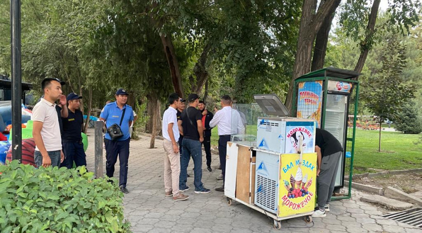 «Ала-Тоо» аянтындагы стихиялуу соода түйүндөрүн текшерүүнүн жыйынтыгында 2 батут, 1 күч өлчөгүч жана балмуздак сатуу пункту жоюлган.
