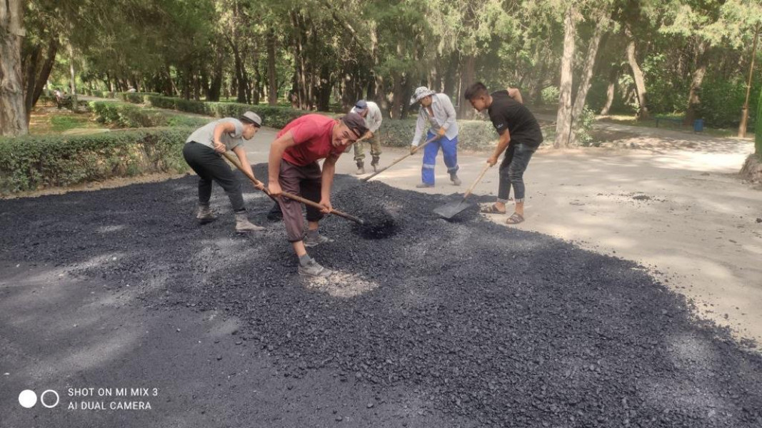 "Бишкекасфальтсервис" МИ тарабынан Ата-Түрк паркынын аймагында буга чейин бир нече тротуарлар калыбына келтирилген, дагы бири асфальтталган.