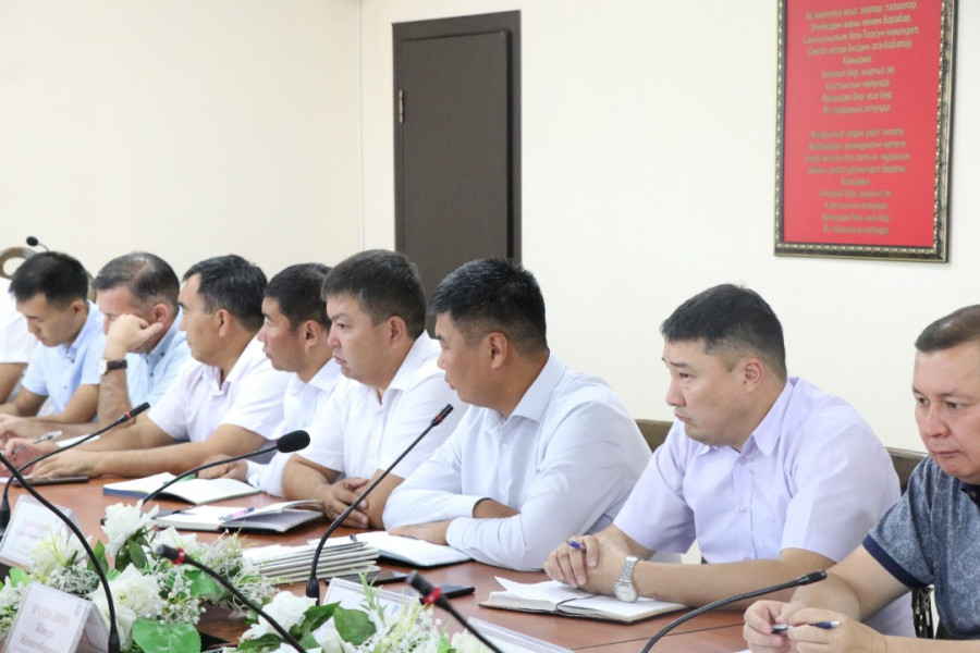 Ленин районунун акимчилигинде башчы Русланбек Тагаевдин төрагалыгы алдында кезектеги пландык жыйын өттү. Райондук кызматтардын, бөлүмдөрдүн жетекчилери жана МАБдардын жетекчилери катышышты.