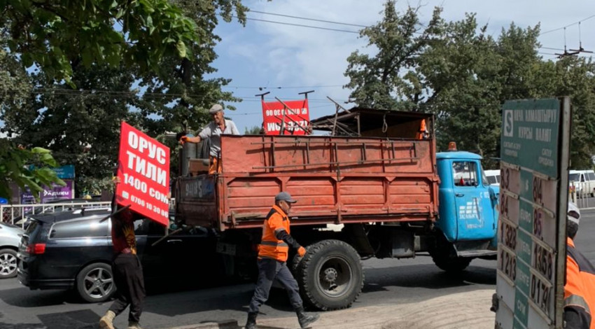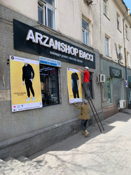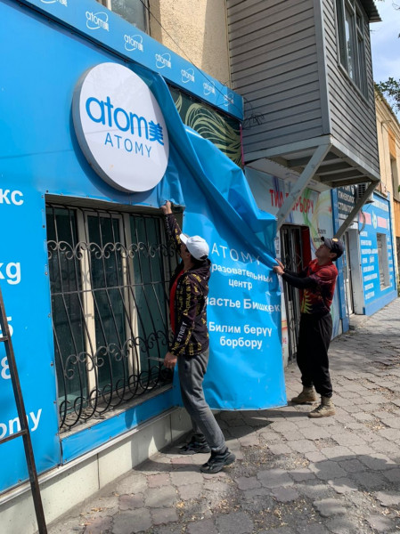 Бишкек шаарынын мэриясы “Кыргыз Республикасынын мамлекеттик тили жөнүндө” Кыргыз Республикасынын Мыйзамынын талаптарына ылайык келбеген жана уруксатсыз илинген жарнамаларды алуу иштерин жүргүзүүдө.