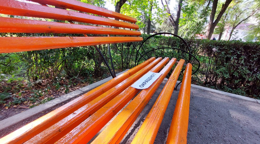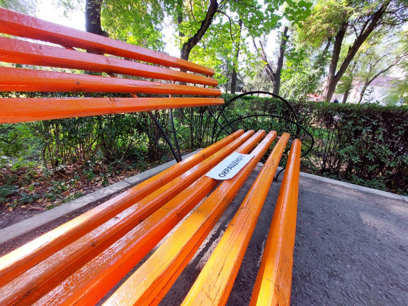 Калган парктарда жана гүлбакчаларда отургучтарды оңдоо жана сырдоо иштери улантылат.