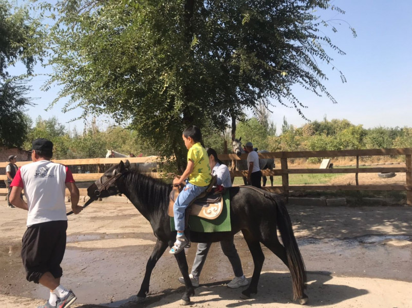 Балдар үчүн аянтчада кызыктуу оюндар, сыйкырдуу поездде сейил багын аралап ат сарайга саякат кылуу уюштурулуп, 3 пони жана 3 ат тосуп алды.