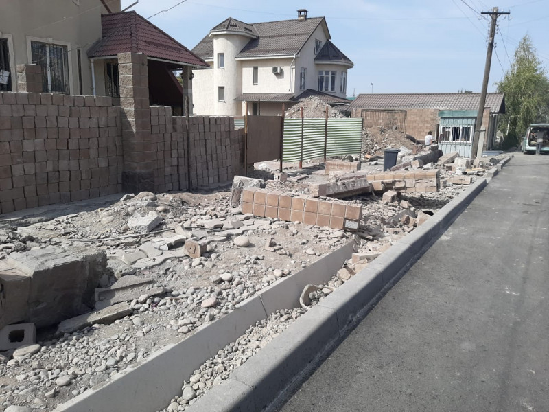 Текшерүүдө баш ийбеген үй ээлеринин тосмолору муниципалитет тарабынан демонтаждалып, тротуар төшөлөрү эскертилет.