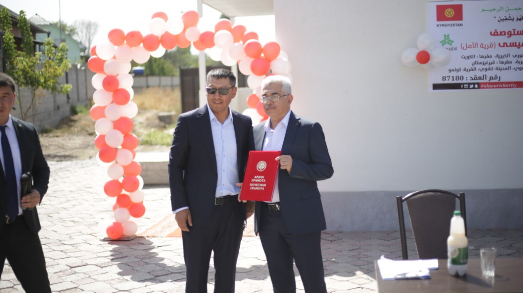 Иш-чаранын жүрүшүндө Максат Сазыкулов фонддун директоруна акимчиликтин Ардак грамотасын жана подрядчикке алкыш баракчасын тапшырды.