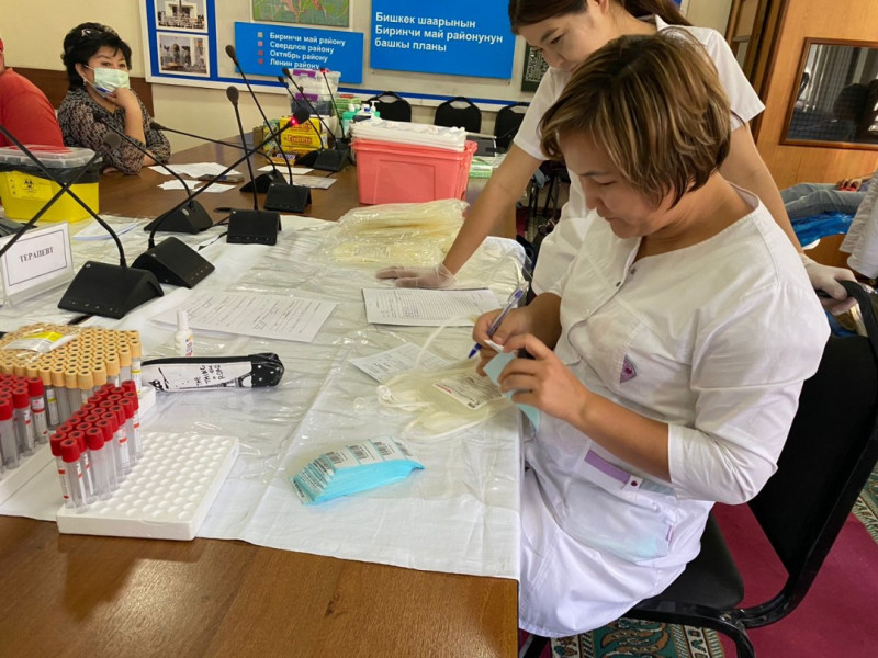 Донордук кандын жетишсиздигине байланыштуу Биринчи май акимиаты кан тапшыруу пунктун уюштурган.