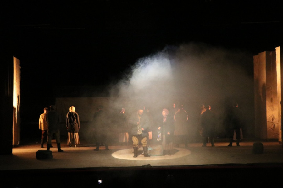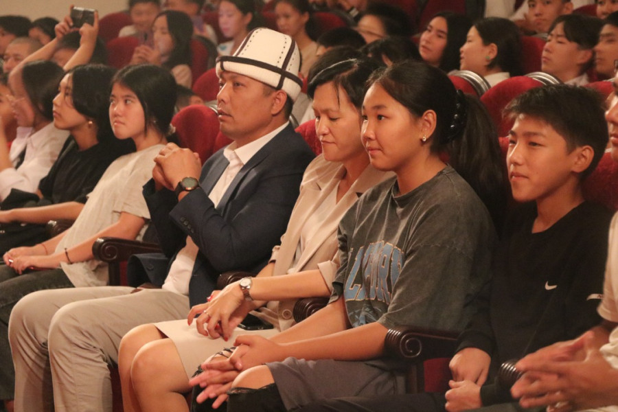 Т.Абдумомунов атындагы Кыргыз улуттук драма театрынын залында Ленин районунун №2, 8, 9, 68, 25, 74, 47 мектептеринин окуучулары үчүн Чыңгыз Айтматовдун «Кылым карытар бир күн» романы боюнча спектакль коюлду.