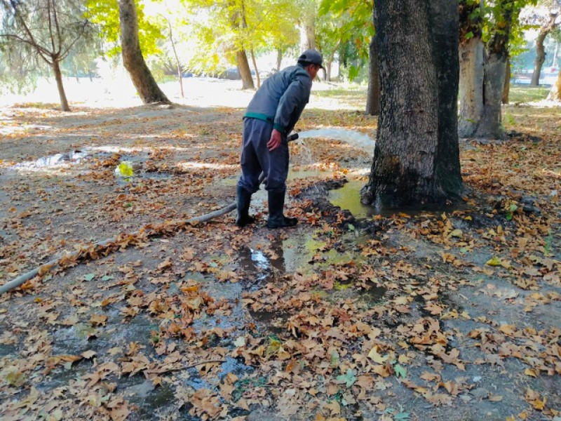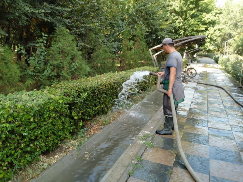Бишкек шаарынын Юнусалиев, Тыныстанов, Логвиненко, Тоголок-Молдо көчөлөрүндө, Березовая, Каражыгач токоюнда, Д.Асанов, Түлөбердиев парктарында сугат иштери жүргүзүлүүдө.