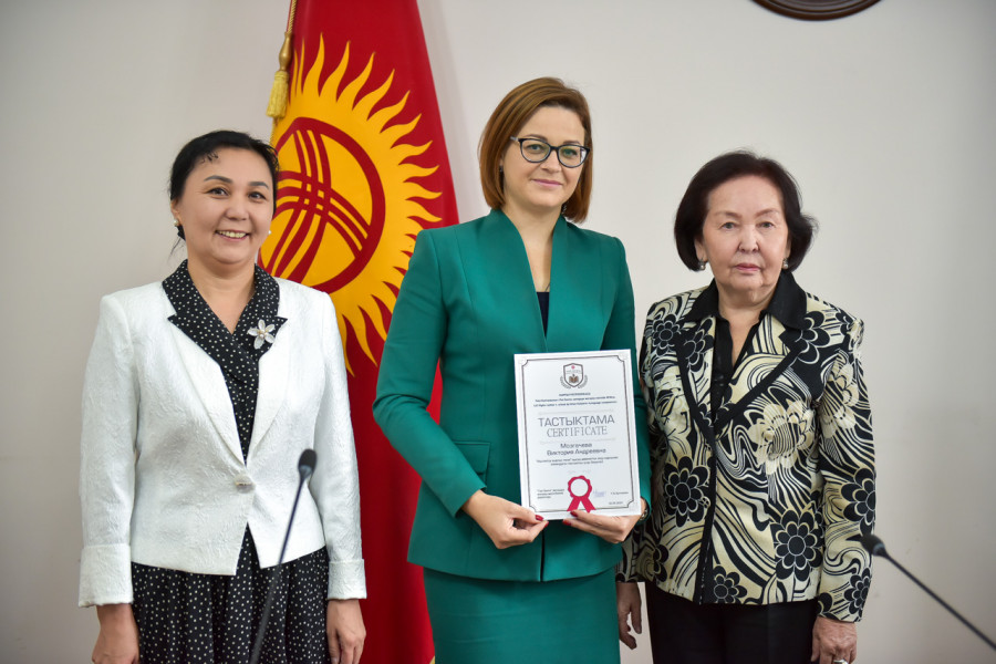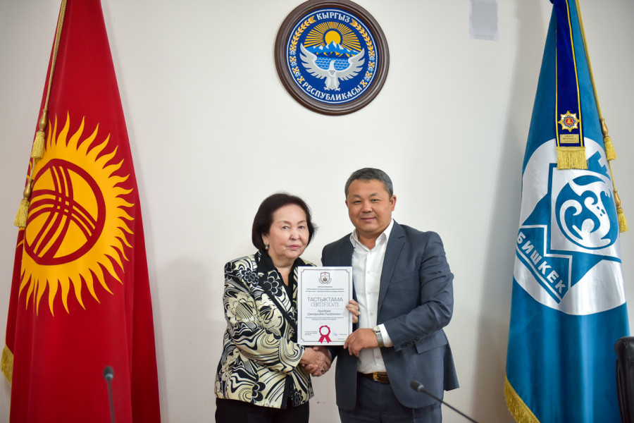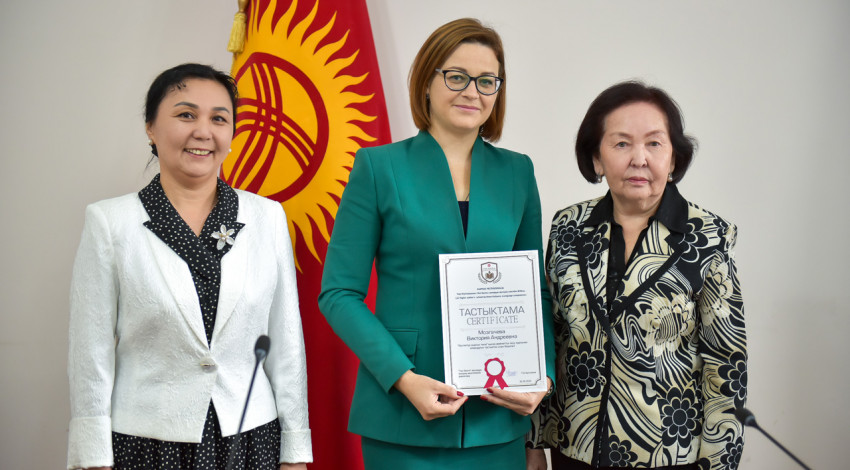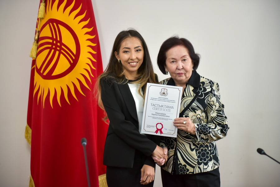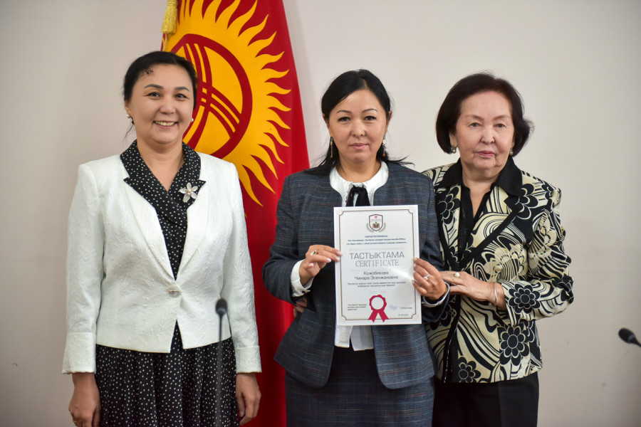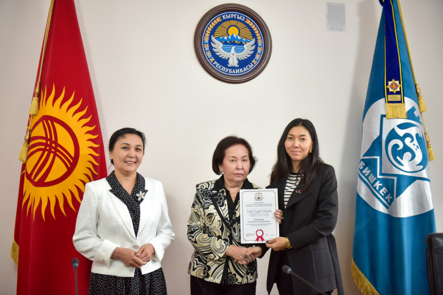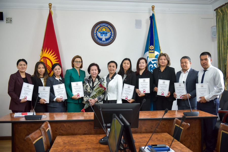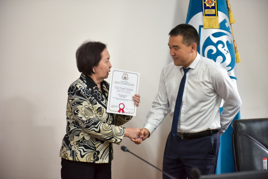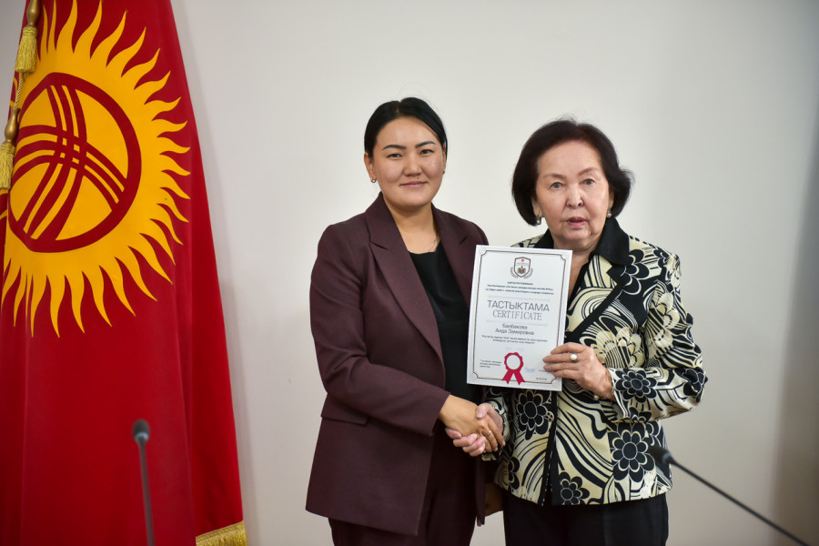 “Иштиктүү кыргыз тили” окуу курстарын аяктаган кызматкерлерге тастыктамалар тапшырылууда.