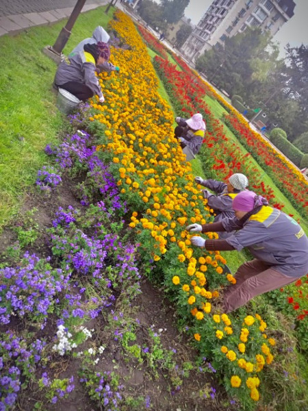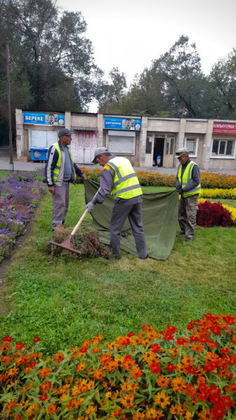 Жеңиш аянтындагы, Жаштар аллеясындагы, Уркуя Салиева атындагы кичи сейил бактагы жана Бишкек баатырдын эстелиги менен Масалиев көчөсүндөгү гүлзарларда отоо жана тазалоо иштери жүргүзүлдү.