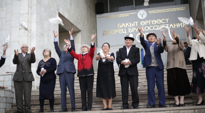 Биринчи май районундагы Бакыт өргөсүндө Жубайлар Мендельсондун үйлөнүү үлпөт маршы менен юбилейлердин Ардак китебине кол коюшту. Майрамдык маанайды Ч.Базарбаев атындагы Бишкек хореографиялык окуу жайынын студенттери таасирдүү вальс, улуттук бий менен коштоду, ошондой эле жубайлар да өздөрү үйлөнүү үлпөт вальсын бийлешти. Иш-чаранын соңунда берилгендиктин жана сүйүүнүн белгиси катары асманга ак көгүчкөндөр учурулду. Ошондой эле, акимчиликтин кызматкерлери кылым карыткандарды үйүндө зыярат кылып, баалуу белектерин жана ар бирине 5 миң сомдон тапшырышты.