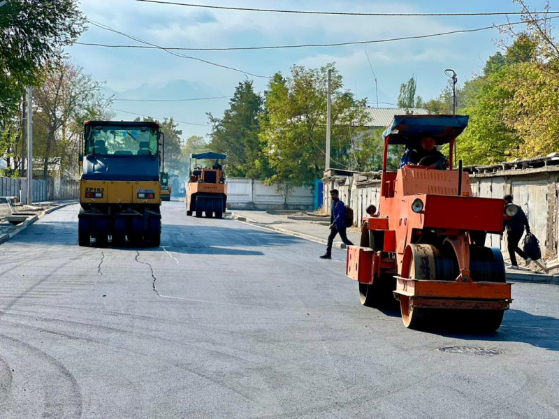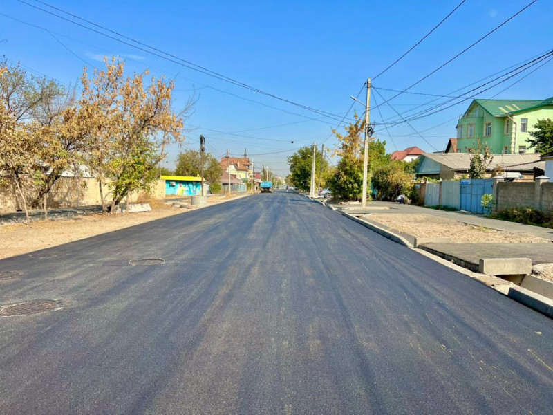 Бүгүнкү күндө асфальтбетон төшөлмөнүн үстүңкү катмарын орнотуу боюнча иштери аяктап, жолдорду белгилөө жана жол белгилерин орнотуу иштери башталуу алдында турат.