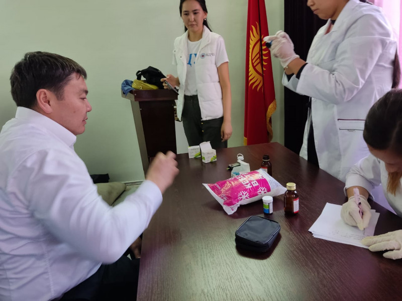 Борбордун дарыгерлери ишкананын кызматкерлеринин кан басымын өлчөп, диабет диагнозун жүргүзүштү. Ошондой эле жүрөктүн активдүүлүгү да өлчөндү. Текшерүү акысыз өткөрүлдү.