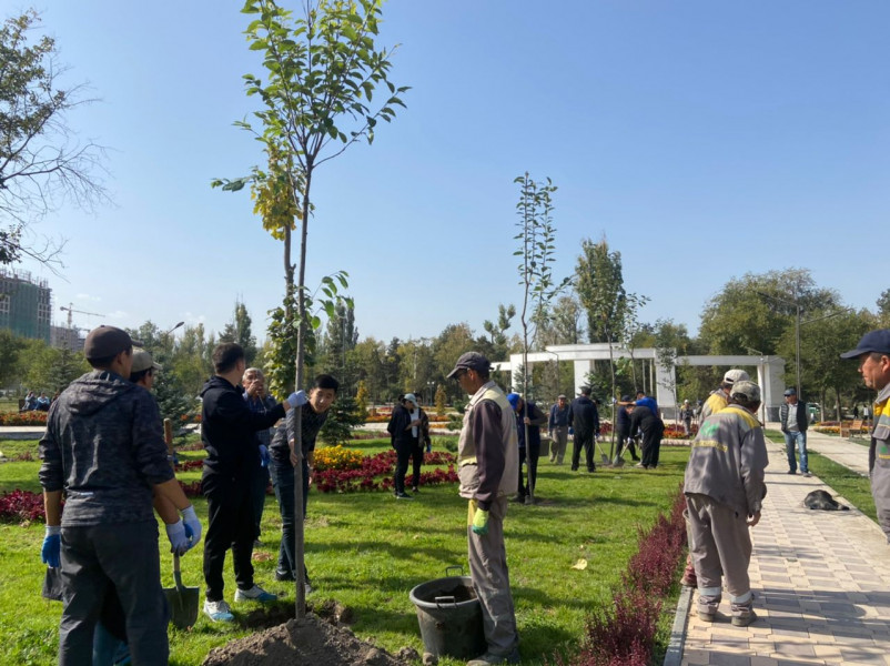 Күзгү отургузуу мезгили өсүмдүктөрдүн жашашына абдан ыңгайлуу болгондуктан, Бишкек шаарынын жашылдандыруучулары Октябрь акимиаты менен биргеликте Байтик баатыр атындагы жаңы парктын аймагына 202 түп жалбырактуу дарактардын көчөттөрүн отургузушту.