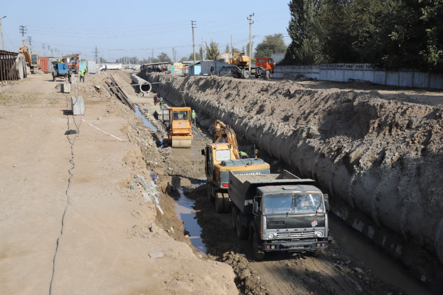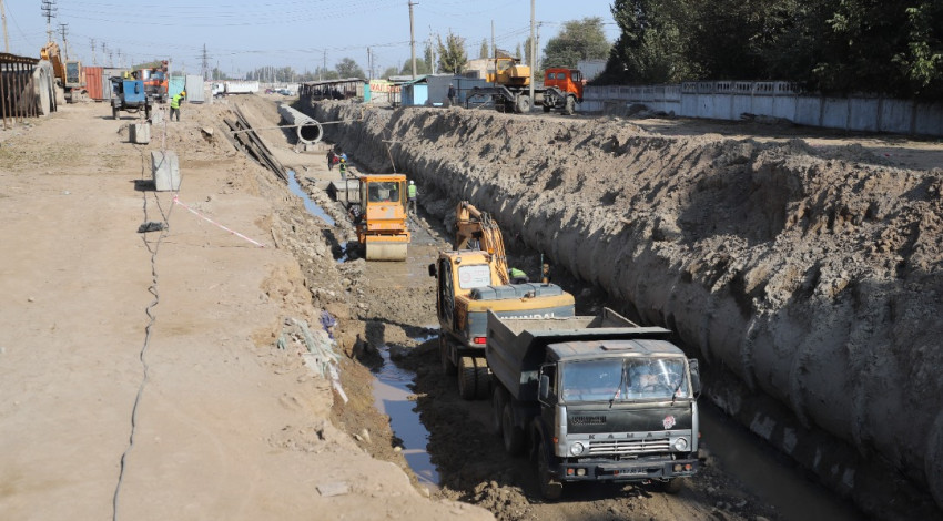 Бишкек шаарында Борбордун түштүк бөлүгүнүн сууну бөлүштүрүү системасынын үчүнчү магистралдык өткөрмө түтүгүн куруп жатат.