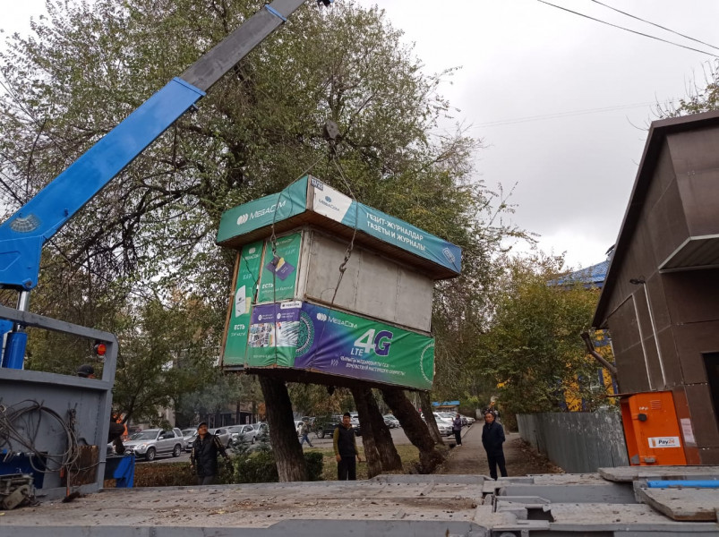 Инспекция Жибек-Жолу жана Т.Молдо көчөлөрүнүн кесилишиндеги соода күркөсүн демонтаждады. Ал эми Сыдыков көчөсүндөгү күркө ээси тарабынан өз ыктыяры менен жоюлган.