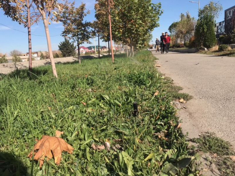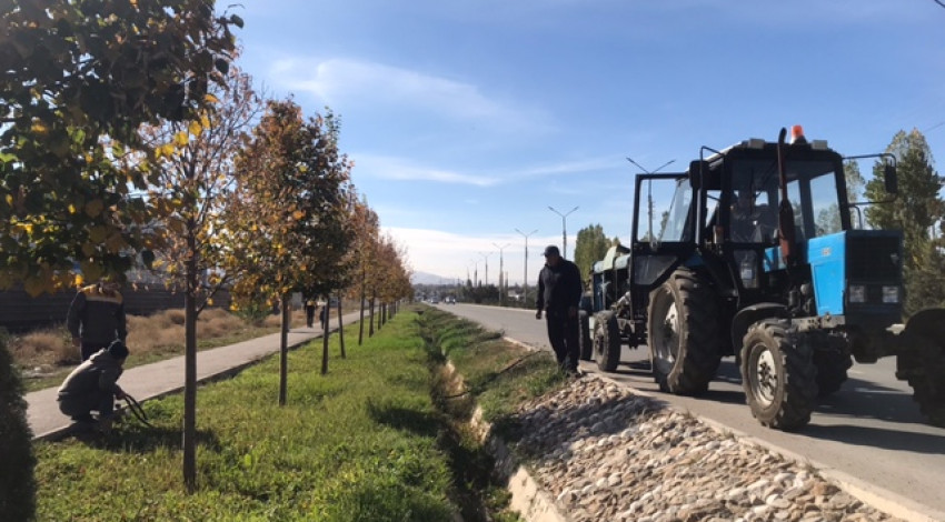 Учурда жашыл чарбанын жумушчулары атайын техниканын жардамы менен Жайыл-Баатыр көчөсүндөгү сугат түтүктөрүндө калган сууну тазалап жатышат. Ирригациялык системаны тазалоону борбор калаанын жашылдандыруучулары аба компрессорунун жардамы менен жүргүзүшөт.
