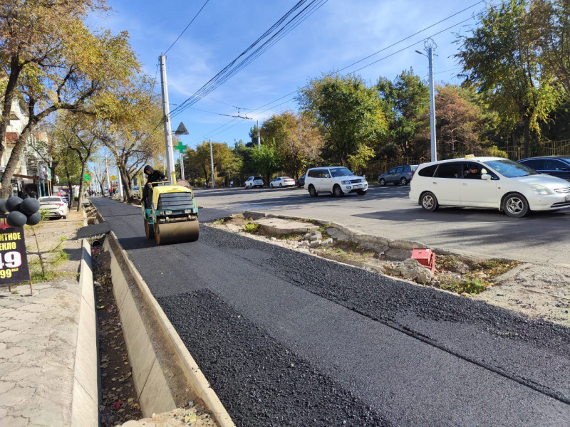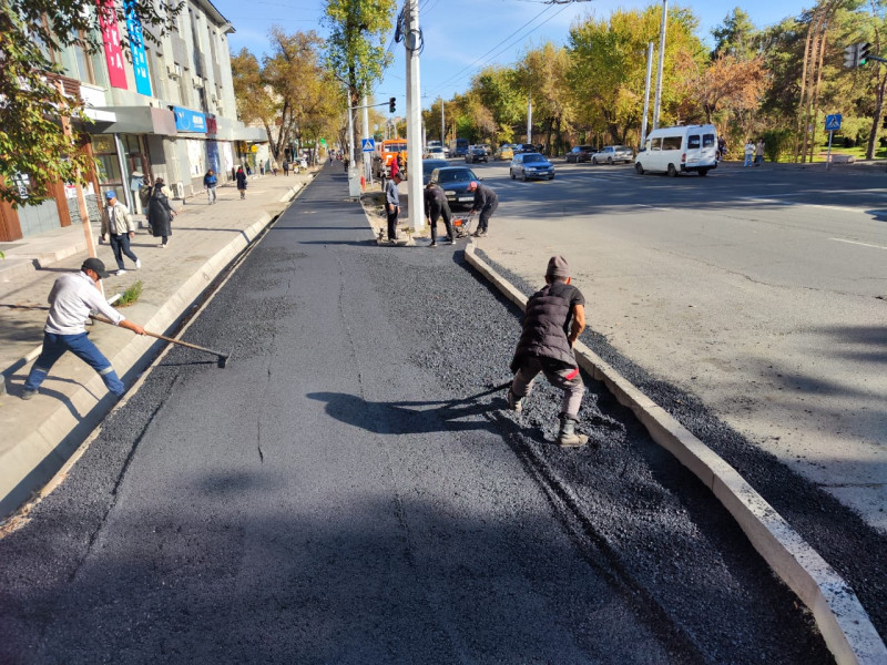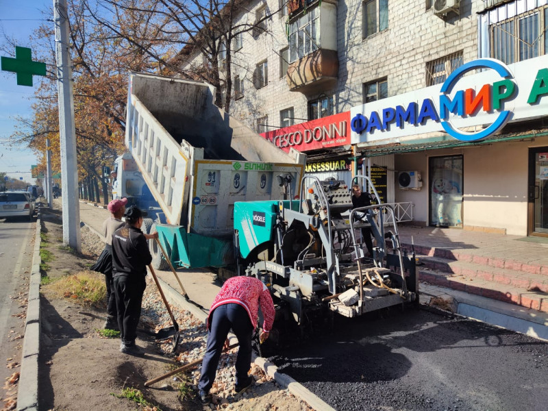 Бүгүнкү күндө Ахунбаев көчөсүнүн тротуарын Байтик Баатыр көчөсүнөн Ч.Айтматов проспектисине чейин асфальттоо иштери жүрүп жатат.