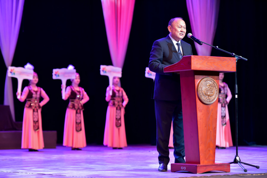Андыктан, бүгүн биз күз күнүндө кулпуруп турган Бишкегибизде мукам музанын кайрыктарына термелип, жан дүйнөбүздүн бөксөсүн толтуруп, жаркын жашоонун дагы бир кереметин сезебиз”, - деди Бишкек шаарынын мэри өз сөзүндө.