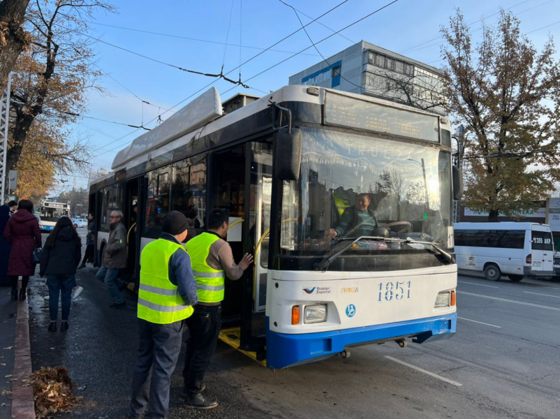 “Бишкек троллейбус башкармалыгы” муниципалдык ишканасынын кызматкерлеринен турган комиссия кыймылдуу курамды текшерди.