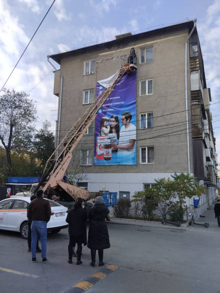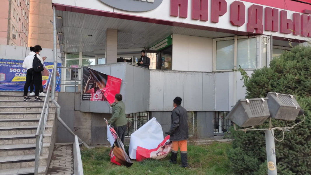 Бишкек шаарынын мэриясынын Көрктөндүрүү жана жерди пайдаланууну көзөмөлдөө боюнча муниципалдык ишканасынын кызматкерлери вице-мэр Нурдан Орунтаевдин жетекчилиги астында уруксат берилбеген жарнамалык түзүлүштөрдү демонтаждоо боюнча рейддерди жүргүзүштү.