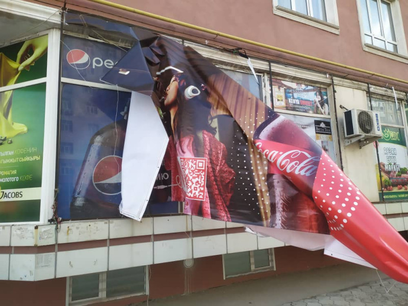 Алсак, Биринчи май районунун аймагындагы Киев көчөсүндө Ч.Айтматов проспектисинен Логвиненко көчөсүнө чейин 37 жарнама конструкциясы, ошондой эле 51 баннер демонтаждалган.