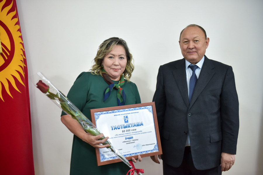 - биринчи орун – Абдраимова Жамал Рахимовна, «Джал-Таун» ЖЧКсынын директору, 100 миң сом;