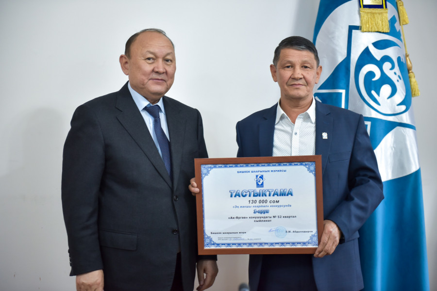 Жеңүүчүлөргө акчалай сертификаттарды борбор калаанын мэри Эмилбек Абдыкадыров тапшырды.