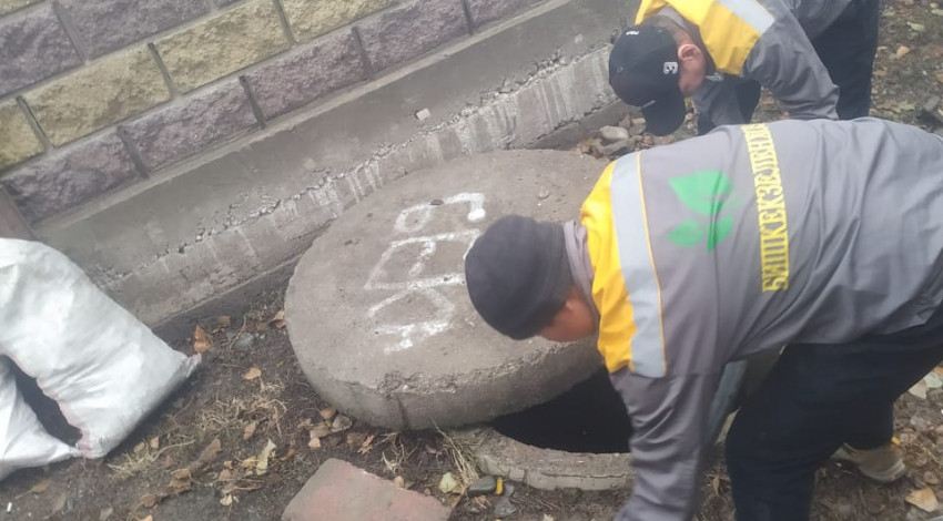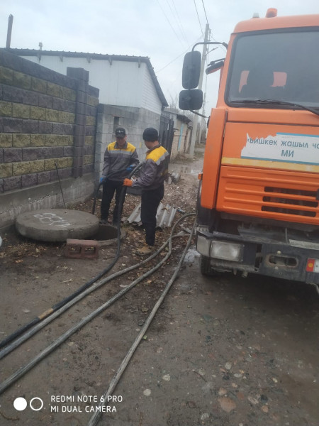 «Бишкек суу чарба» муниципалдык ишканасынын кызматкерлери Биринчи май районунун Ак-Босого конушунун Чүй көчөсүндө жайгашкан жабык дренаждык түйүндөрдү КамАЗ-ко560 техникасы менен үйлөп жатышат.