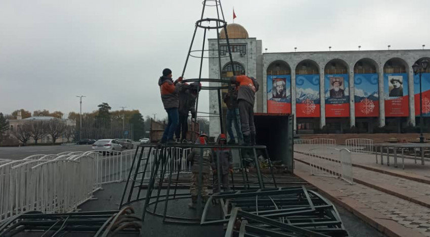 Борбордук “Ала-Тоо” аянтында өлкөнүн башкы балатысынын темир каркасын орнотуу иштери башталды.