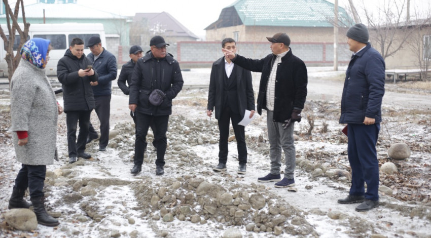 Алгач Чүй 45-көчөсүн текшерип, жабык коллектордук-дренаждык системаны куруу маселесин талкууладык.