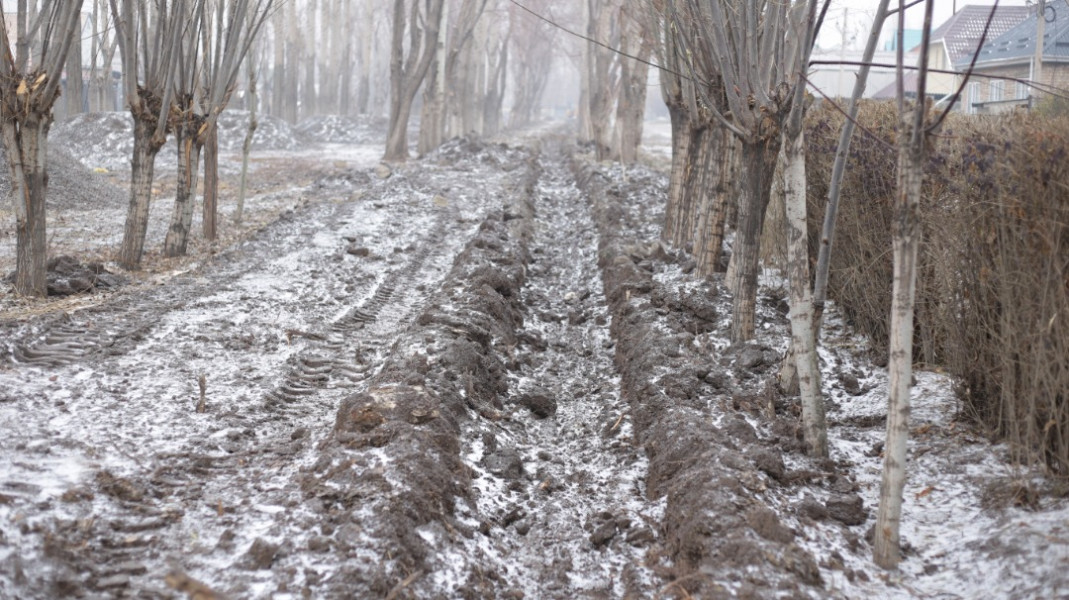 Иштер башталды, сугат лотокторун төшөө үчүн траншеяны казуу иштери жүрүп жатат, тротуардын фундаменти (жаздык) орнотулуп, топурак, бордюрлар алынып келинди.