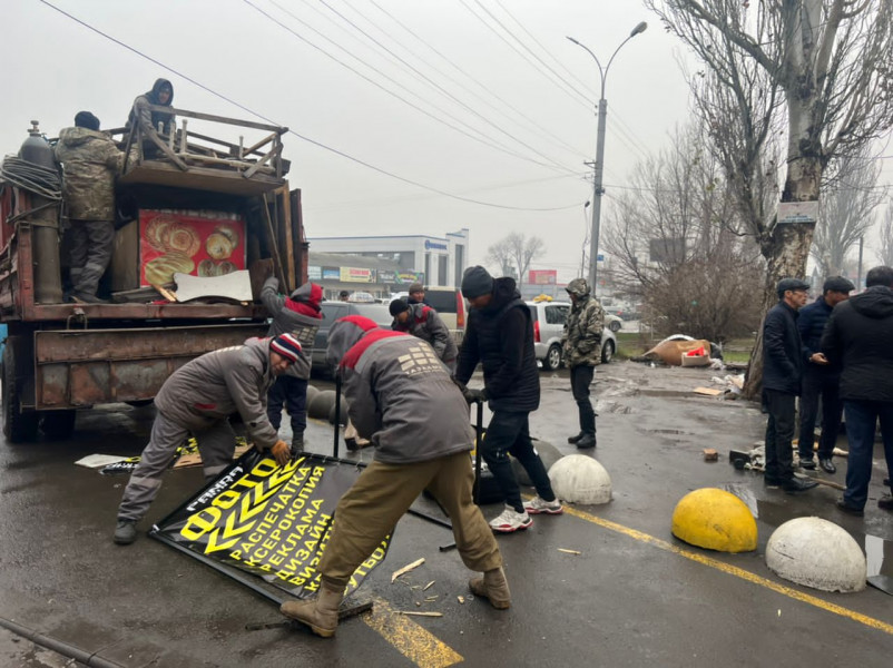 Мыйзамсыз сооданы алдын алуу жана жоюу максатында «Аламүдүн базары» соода комплексине жанаша жайгашкан Жибек-Жолу проспектиси, Будённый көчөсү , Курманжан-Датка көчөлөрүндө 15тен ашык жарнамалык конструкциялар жана 20дан ашык ар кандай ээси жок объектилер (отургучтар, столдор, коробкалар, шкафтар ж.б.) алынынып салынды.
