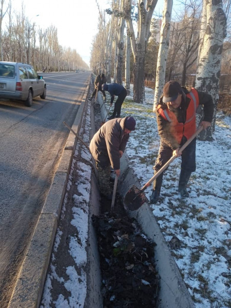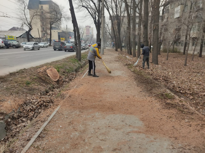 Дем алыш күндөрү бак-дарактарды санитардык бутоо, авариялык жана куурап калган дарактарды алуу, сугат тармактарын тазалоо, ошондой эле түшкөн жалбырактарды тазалоо иштерин өткөрдүк.