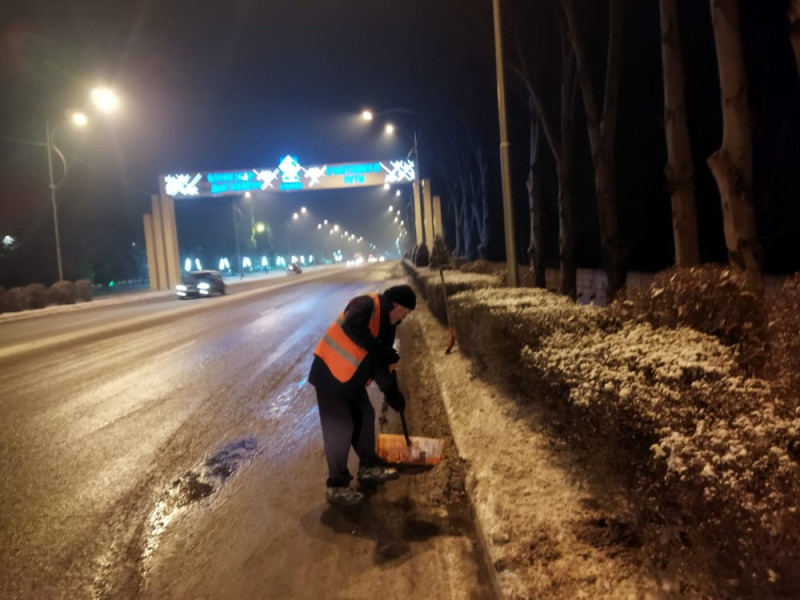 «Тазалык» муниципалдык ишканасы түнү бою унаа жүрүүчү жолдорду жана тротуарлардагы карды тазалап, жолдорго туз чачуу иштерин жүргүздү.