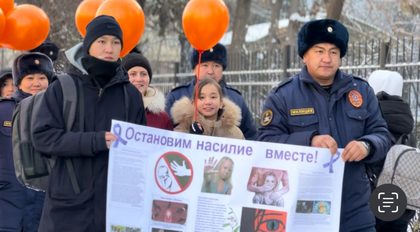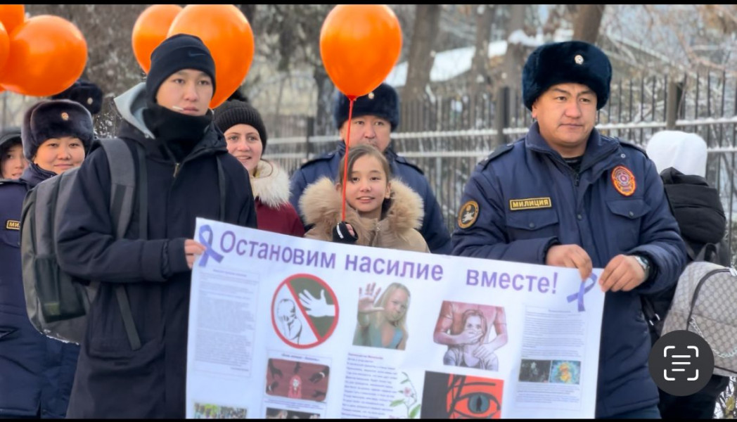 Жөө жүрүштүн жүрүшүндө милиция кызматкерлери жана мектеп окуучулары менен «Зордук-зомбулуксуз жашоо» деген темада шаардыктарга түшүндүрүү иштерин жүргүзүштү.