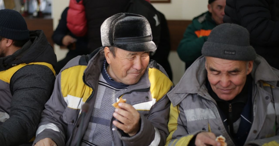 Багбандар ушундай суук мезгилде ысык чайга жылынышып, ыраазычылык билдиришти.