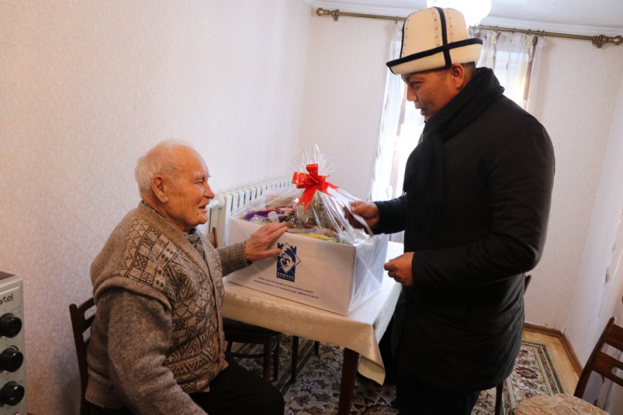 Русланбек Тагаев ардагерди келе жаткан жаңы 2023-жыл менен куттуктап, белектерди тапшырды жана чың ден соолук жана бардык жакшылыктарды каалады.