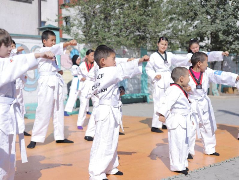 «Айданек» борборунун WT Таэквондо ассоциациясы менен кызматташуусунун аркасында 1-августтан баштап балдар үчүн жумасына үч жолу машыгуулар өткөрүлүп келет. Коноктун урматына тарбиялануучулар чакан концерт даярдап, таэквондо боюнча өз чеберчиликтерин көрсөтүштү.