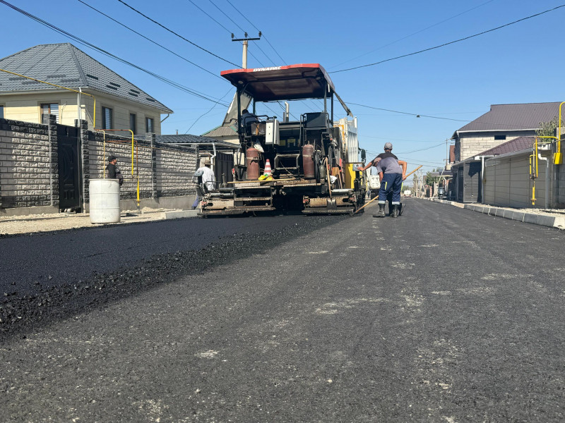 «Бишкекасфальтсервис» муниципалдык ишканасы Алтын-Ордо, 9 көчөсүнүн (Кадыр-Ата) бүт узундугу боюнча жол куруу иштерин жүргүзүүдө.