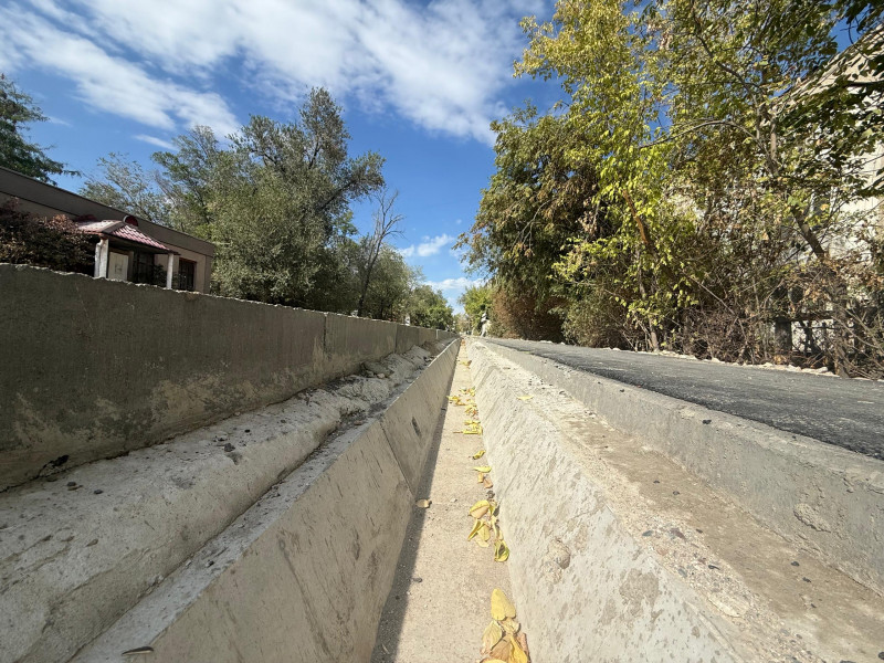 Оңдоо иштеринин алкагында эски асфальт сыйрылып, жаңы бордюрлар коюлуп, ирригациялык тармак орнотулду. Жолдун жана тротуарлардын негизи асфальт төшөө үчүн даярдалган.