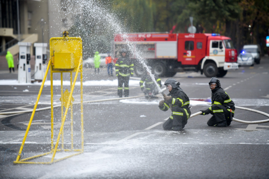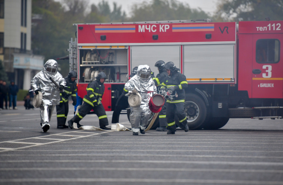 Программа жарандык коргонуу кызматтарынын парады менен башталды. Конокторго өрт жана кырсык учурундагы куткаруучулардын аракеттери, ошондой эле заманбап өрт-куткаруу каражаттары жана жабдуулары көрсөтүлдү.